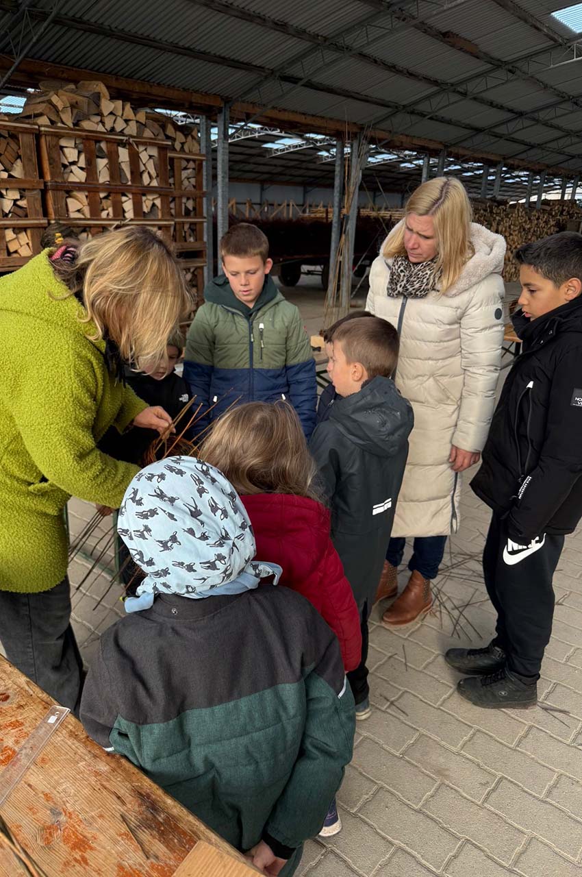 In den vergangenen Wochen fand für alle Kinder unserer Grundschule eine aufregende Korbflechtwoche auf dem Heidhof in Neupotz statt, die sowohl Schüler als auch die Lehrerinnen begeisterte. Unter der Anleitung der erfahrenen Hobbykorbflechterin Andrea Hoffmann konnten die Kinder in kleinen Gruppen kreativ werden und ihre eigenen Meisenknödelhäuschen und Sterne herstellen.